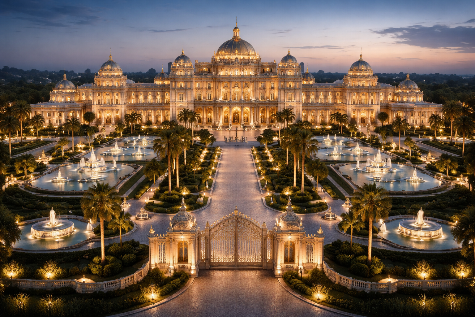 The Palace contains atleast 50 beds rooms like and bathrooms are also attach on and it is huge and luxury all elegant and comfortable.