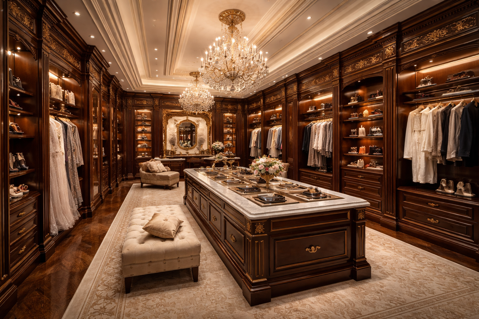 And now wardrobe it's huge than a apartment room 1000s of clothes lined up in symmetry in hanger and organised fully.